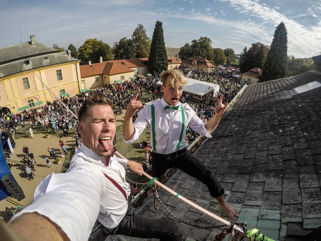 Občas se samozřejmě něco nepovede. Na jedné akci byla čerstvě navezená zemina, ale nikdo nám o tom neřekl. My ukotvili tricklajnu za osm kolíků v zemi, normálně se to dělá za čtyři. Přesto naše vystoupení skončilo předčasně tím, že nám jedna strana kotvení vyletěla ze země. Do Vysokého nad Jizerou jsem zase přijel se zlomenou rukou. Schoval jsem sádru pod košili a skákal, ale i tak to bylo vidět. Vystupovalo se nad dlažebníma kostkama a Luky při jednom skoku netrefil lajnu, spadl na zem a zlomil si nos. Lidi nám po skončení říkali: „Tyjo, kluci, to bylo skvělý!“ Já jsem pak řídil dodávku do nemocnice se zlomenou rukou a Luky byl vedle mě vyplej. Paradoxem je, že organizátor akce si nás objednal ještě asi čtyřikrát.